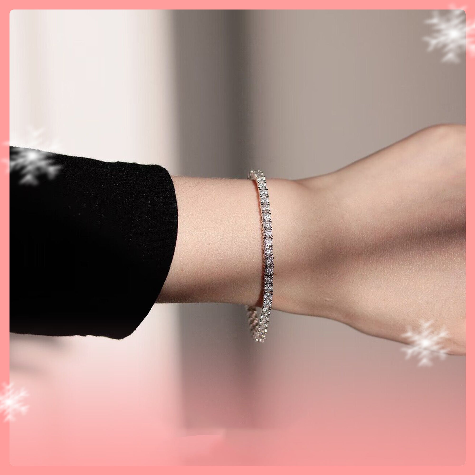 Add a touch of understated luxury to your style with our 5.2CT Moissanite Tennis Bracelet. Crafted from premium gold vermeil, this bracelet features a stunning row of brilliant-cut moissanite stones that catch the light from every angle. The minimalist yet sophisticated design makes it perfect for business casual attire or formal occasions, offering versatility for any wardrobe. Elevate your look with a piece that balances elegance and modernity, all while showcasing unparalleled sparkle. A must-have for jewelry lovers seeking refinement and brilliance.