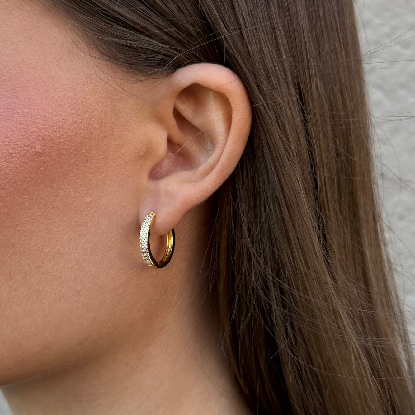 THE CLASSIC STONE HOOPS are elegant and versatile earrings, designed with a delicate row of shimmering stones that add a touch of sparkle to their classic hoop shape. These hoops offer a perfect blend of timeless elegance and modern flair. Their subtle size makes them ideal for everyday wear, while the added sparkle makes them suitable for special occasions as well. Combine with our ETERNITY PAVÉ RING for a complete look. Delivered in a luxurious box.