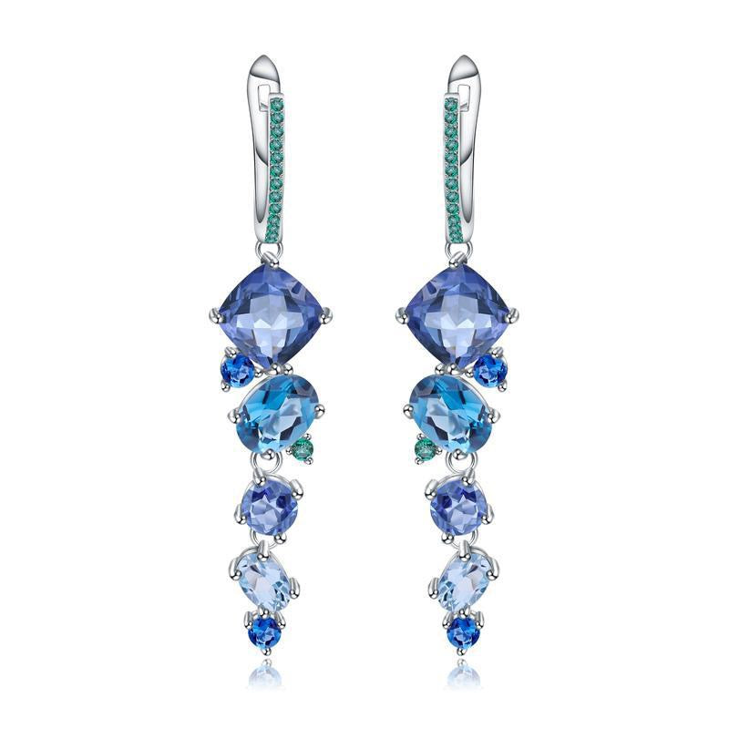 This breathtaking designer necklace is a masterpiece crafted from 925 sterling silver, combining elegance and sophistication. Adorned with a dazzling array of natural colored gemstones, including Swiss blue topaz, sky blue topaz, nano sapphire blue, nano emerald green, and a centerpiece of mystic quartz (9x9mm), it showcases a vibrant and harmonious color palette. The intricate arrangement and teardrop-shaped pendant create a timeless and luxurious look, perfect for banquets or formal occasions. This unique jewelry piece not only highlights superior craftsmanship but also adds a touch of glamour and refinement to any ensemble.