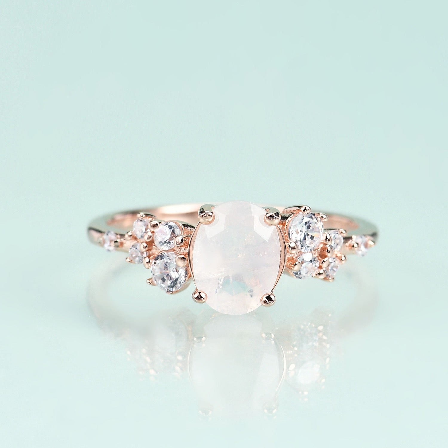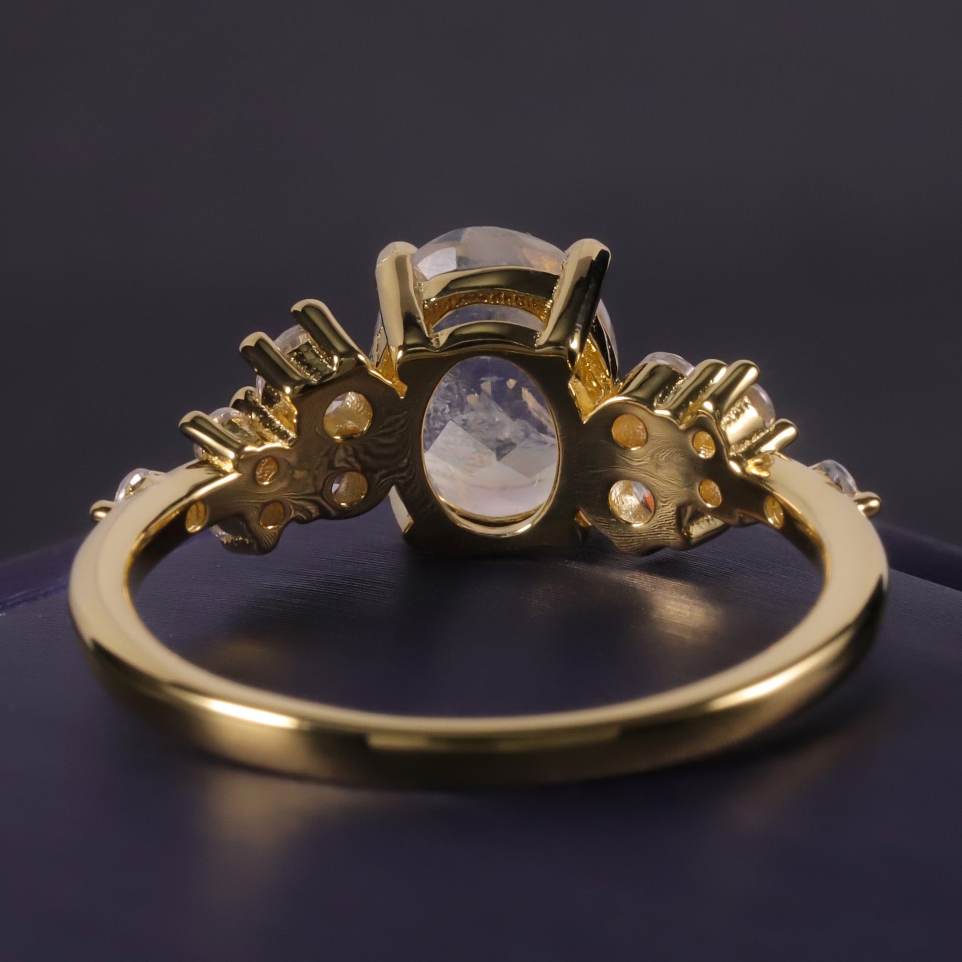 This stunning ring features a 925 sterling silver base with an elegant gold-plated finish, showcasing a perfect balance of sophistication and modern style. The centerpiece is a natural moonstone, radiating a dreamy glow reminiscent of moonlight, exuding charm and mystery. Accentuated by brilliant-cut cubic zirconia stones on either side, this ring sparkles beautifully, making it a standout piece for both everyday wear and special occasions. Its unique design reflects timeless elegance and contemporary flair, making it the perfect choice to express your exquisite taste. Own this masterpiece today and add a touch of romance and luxury to your jewelry collection!