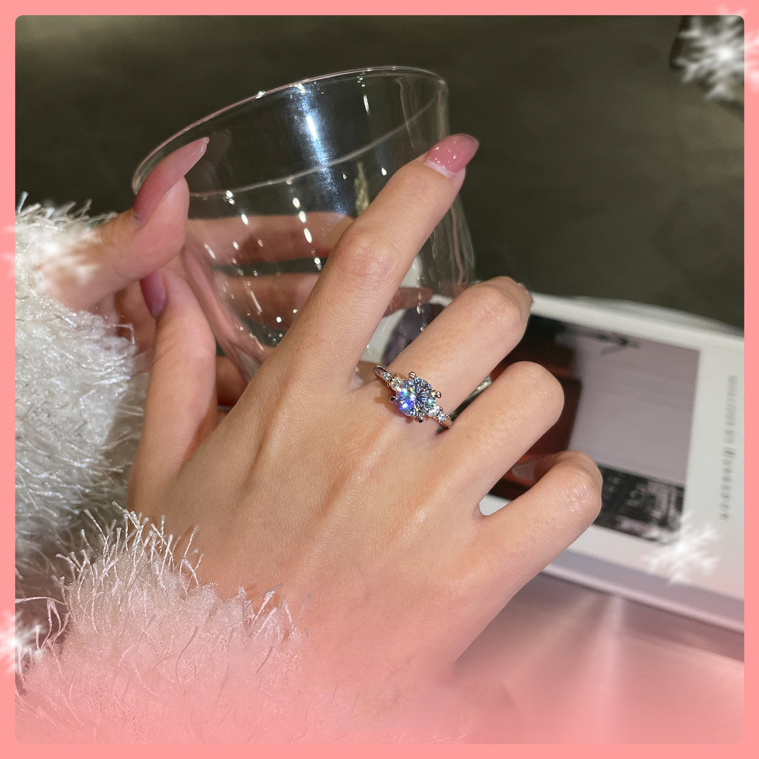 Celebrate your love or elevate your style with this breathtaking 925 sterling silver 2CT Moissanite ring. Featuring a dazzling, brilliant-cut Moissanite centerpiece surrounded by shimmering accent stones, this ring sparkles with unmatched brilliance and clarity. The delicate rose gold accents add a romantic touch to the elegant design, making it perfect for engagements, anniversaries, or simply as a gift to yourself. Expertly crafted with durable 925 sterling silver, this ring is hypoallergenic and tarnish-resistant, ensuring lasting beauty and comfort. Its versatile design pairs effortlessly with any outfit, adding a touch of luxury to every moment.
