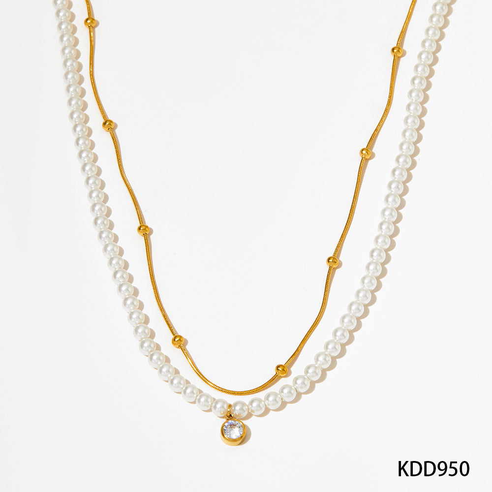 This double-layer shell pearl zircon set is a stunning combination of elegance and versatility, featuring a gold-plated necklace and bracelet that radiate sophistication. Each piece is adorned with luminous shell pearls paired with sparkling zircon pendants, adding a luxurious and refined touch. The necklace measures 40.5cm + 5cm adjustable chain, and the bracelet is 16.5cm + 4cm adjustable chain, ensuring a comfortable and customizable fit. The delicate design incorporates a mix of smooth pearl strands and minimalist gold-plated accents, creating a harmonious and modern aesthetic. Perfect for both formal occasions and everyday wear, this jewelry set offers timeless charm and graceful style, elevating any outfit effortlessly.