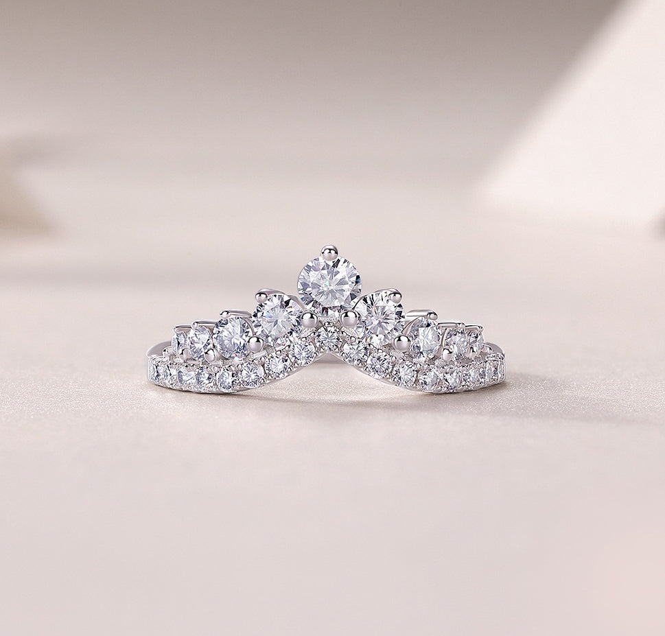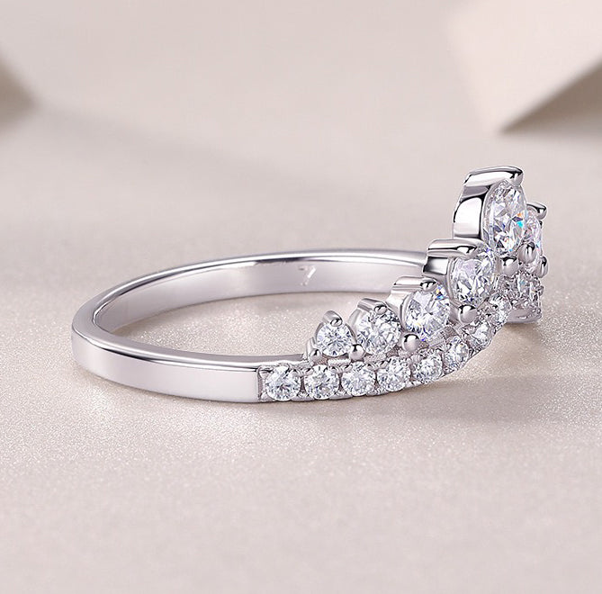 Graceful Elegance: Crown-Style 925 Sterling Silver Moissanite Ring