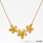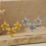 This sweet pleated flowers necklace and earrings combination is a perfect blend of feminine elegance and contemporary style, crafted from durable stainless steel. The delicate pleated flower design brings a touch of nature-inspired charm, available in both gold-tone and silver-tone finishes for versatile styling. The necklace features a series of intricately detailed flowers, while the matching earrings complete the set with their complementary design. Perfect for both casual outings and special occasions, this combination offers a lightweight yet eye-catching look, making it a timeless and graceful addition to your jewelry collection.