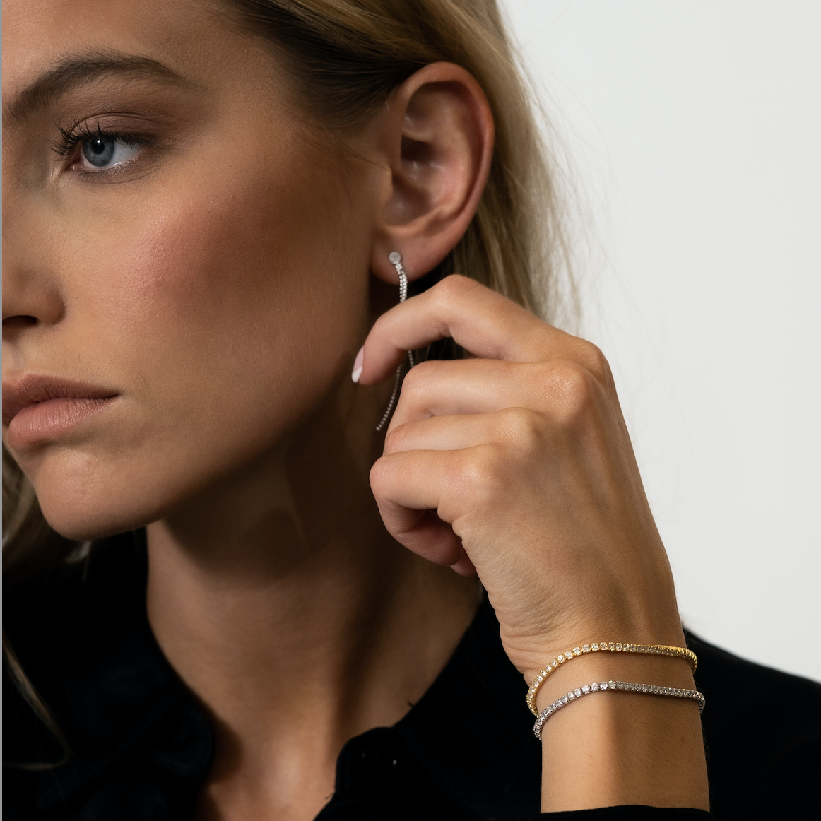 The stylish Tennis bracelet was named in 1987 after the professional female tennis player Chris Evert. During a game her wrist bracelet broke and she asked for a pause to look for the stones, the Tennis Bracelet was born.