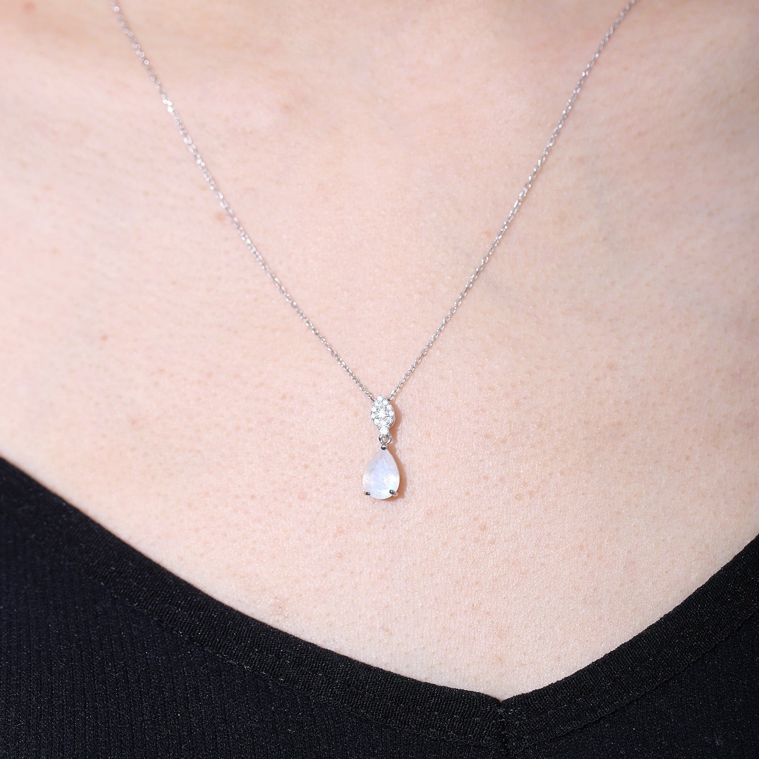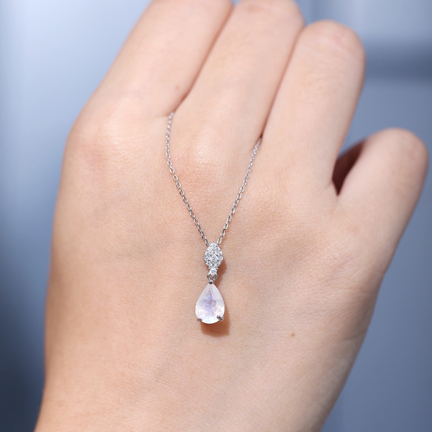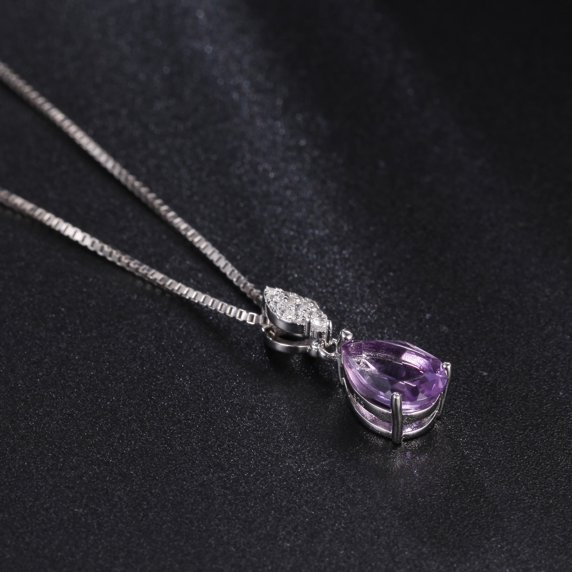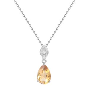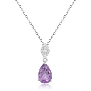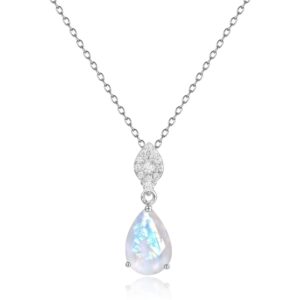 This exquisite designer necklace is crafted with 925 sterling silver and showcases a selection of natural gemstones, each adding its own unique charm. Choose from natural amethyst, garnet, yellow citrine, or the mesmerizing blue moonstone to complement your style. The pear-shaped pendant, combined with a delicate silver chain, creates a timeless and elegant look that is perfect for any occasion—whether a casual day out or a formal evening event.