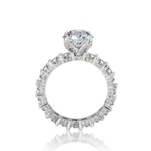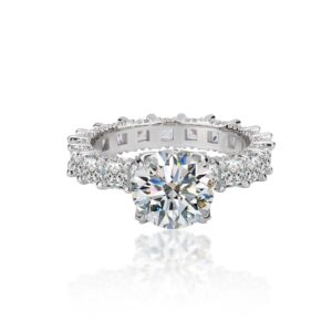 Make a bold statement of love and commitment with this Luxury 4 Carat Moissanite Engagement Ring, exquisitely crafted in premium S925 sterling silver. Featuring a breathtaking 4-carat moissanite centerpiece surrounded by a continuous band of sparkling stones, this ring delivers unparalleled brilliance and elegance. The luxurious design is perfect for engagements or special occasions, symbolizing timeless love and sophistication. Hypoallergenic and durable, this ring is designed for daily wear while maintaining its radiant shine.